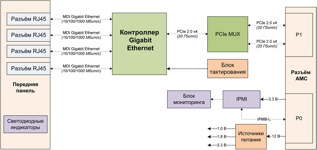 форм-фактора AMC Single Mid-Size/Full-Size для MicroTCA и AdvancedTCA систем - Интегрированная интеллектуальная система контроля и управления IPMI v. 1.5
