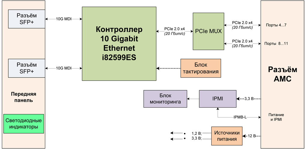 - Возможность подключения контроллера 10 Gigabit Ethernet к портам