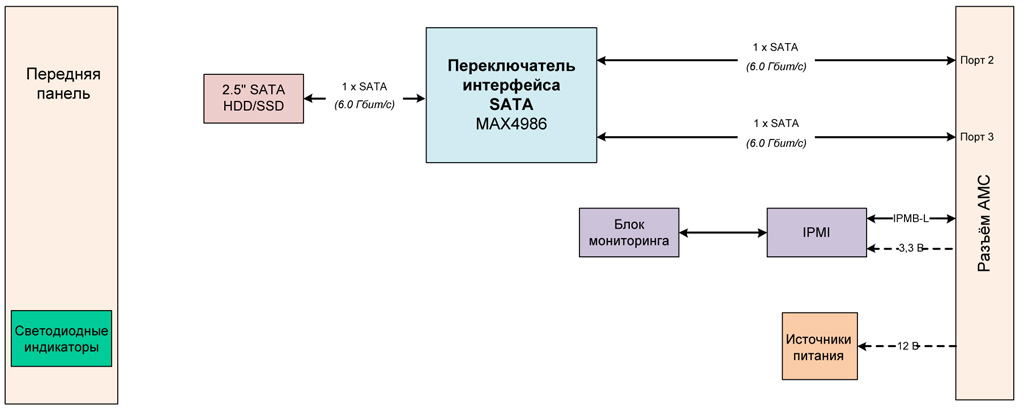 6 Гбит/с - Общая ёмкость модуля до 1,5 Тбайт при использовании HDD и 1 Тбайт при использовании SSD