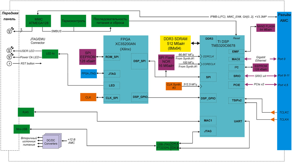 - Высокопроизводительная система на кристалле — восьмиядерный цифровой сигнальный процессор (DSP) TMS320C6678 Texas Instruments (TI)