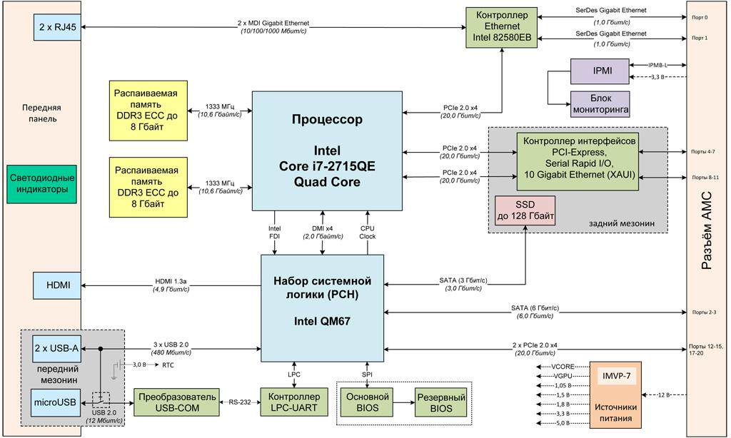 DDR3-1600 с поддержкой ECC, общим объёмом до 16 Гбайт - Встроенный SSD объёмом до 128 Гбайт