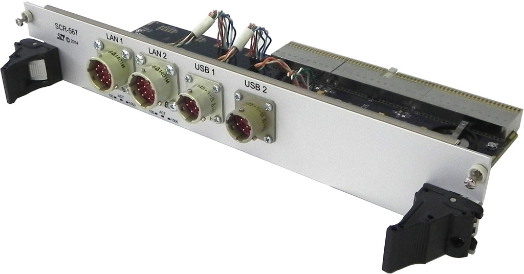 Интерфейсы MDI Gigabit Ethernet, USB 2.0 выведены в разъёмы, типа СНЦ23, на передней панели модуля, обладающие повышенной герметичностью и влагостойкостью.