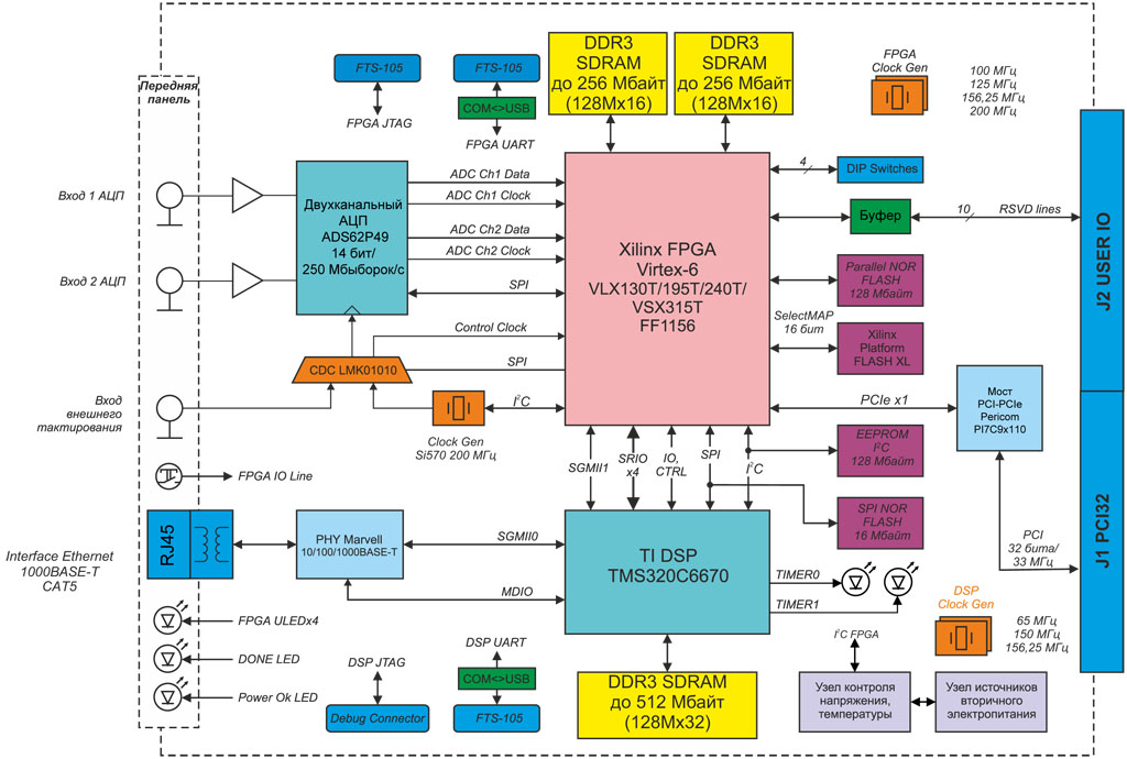 - Банк синхронного динамического RAM DDR3 SDRAM на DSP, объёмом 512 Мбайт