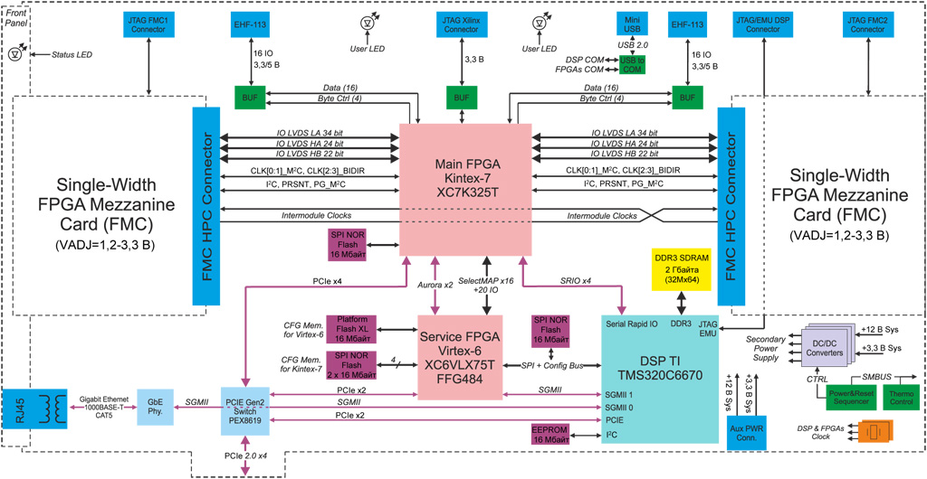 • Служебная FPGA Xilinx Virtex-6 XC6VLX75T: