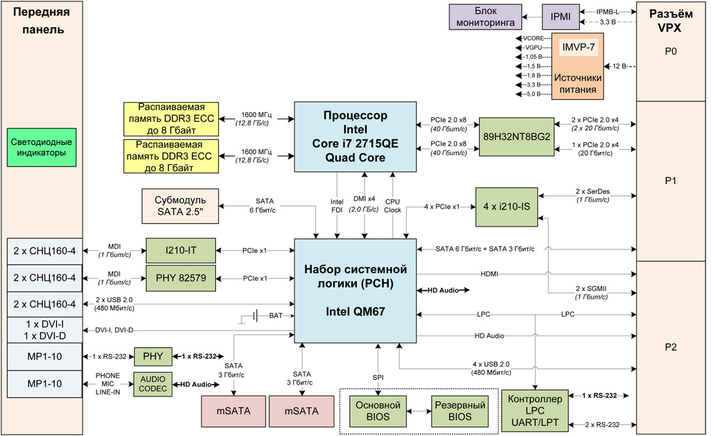 • 2 × Gigabit Ethernet (SerDes) на разъём VPX P1.