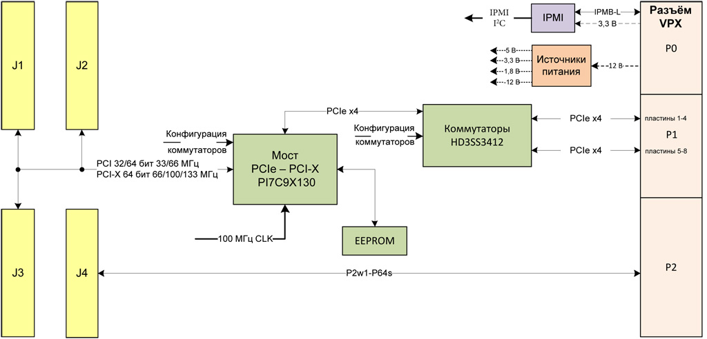 - Интерфейс PCIe x4 через VPX Fat Pipes