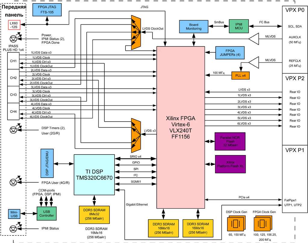 форм-фактора VPX 3U, соответствующий стандартам: ANSI/VITA46.0-2013 (воздушное охлаждение), ANSI/VITA46.3-2012 , ANSI/VITA46.6-2013 и ANSI/VITA65-2010 (R2012) - Цифровой порт сигналов LVDS передней панели на разъёме iPass+ HD 4x