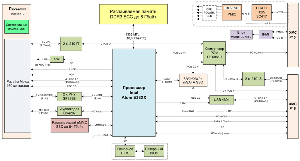 DDR3-1333 с поддержкой ECC, общим объёмом до 8 Гбайт - Встроенный SSD с интерфейсом eMMC объёмом до 64 Гбайт
